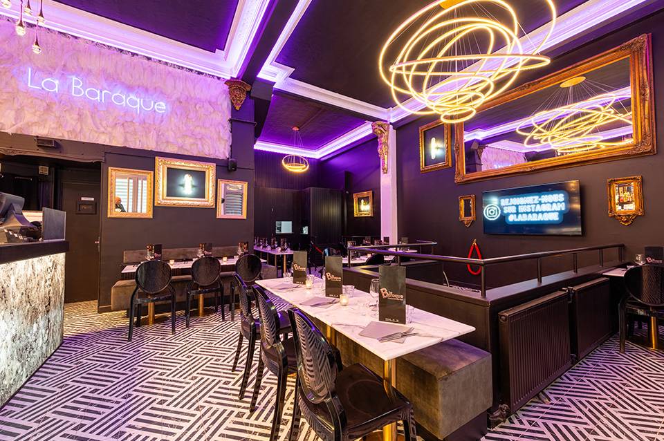 À mi-chemin entre Bastille et Charonne, La Baraque est plus qu’un simple restaurant : c’est un lieu de vie festif où la gastronomie se mêle à l’ambiance conviviale du 11e arrondissement. On y dîne, on s’y retrouve, on y fait la fête. Après un repas savoureux, laissez-vous porter par l’énergie du lieu, entre bar animé et piste de danse prête à s’embraser.